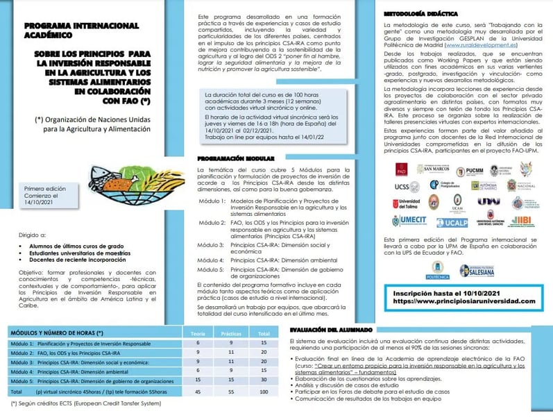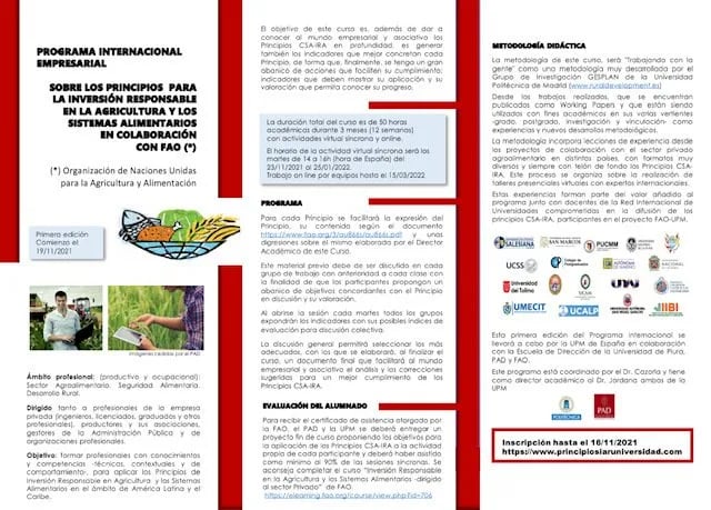 Programa de formación sobre los principios para la inversión responsable en la agricultura y los sistemas alimentarios, en colaboración con la FAO.