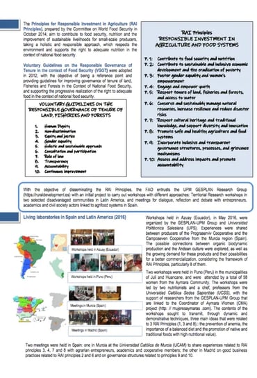 2. La publicación (enlace de descarga) recoge sintéticamente los trabajos del año 2016 en España, Ecuador y Perú en forma aplicativa y con vinculación con universidades y con comunidades rurales y/o empresas y cooperativas.
